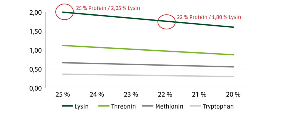 Abbildung 1: Aminosäure Zielwerte Kälbermilch (%) in Abhängigkeit vom Proteingehalt