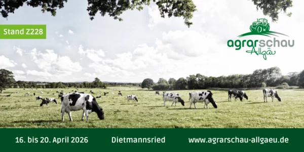 Vom 16. bis 20. April 2026 sind wir wieder auf der Agrarschau Allgäu in Dietmannsried vertreten. Gemeinsam mit unserem Handelspartner Heinle Agrarbedarf OHG finden Sie uns im Ausstellungszelt am Stand Z228.
